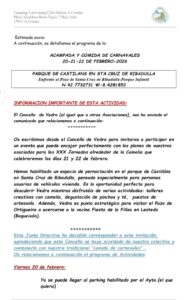 ACAMPADA Y COMIDA CARNAVAL 2026